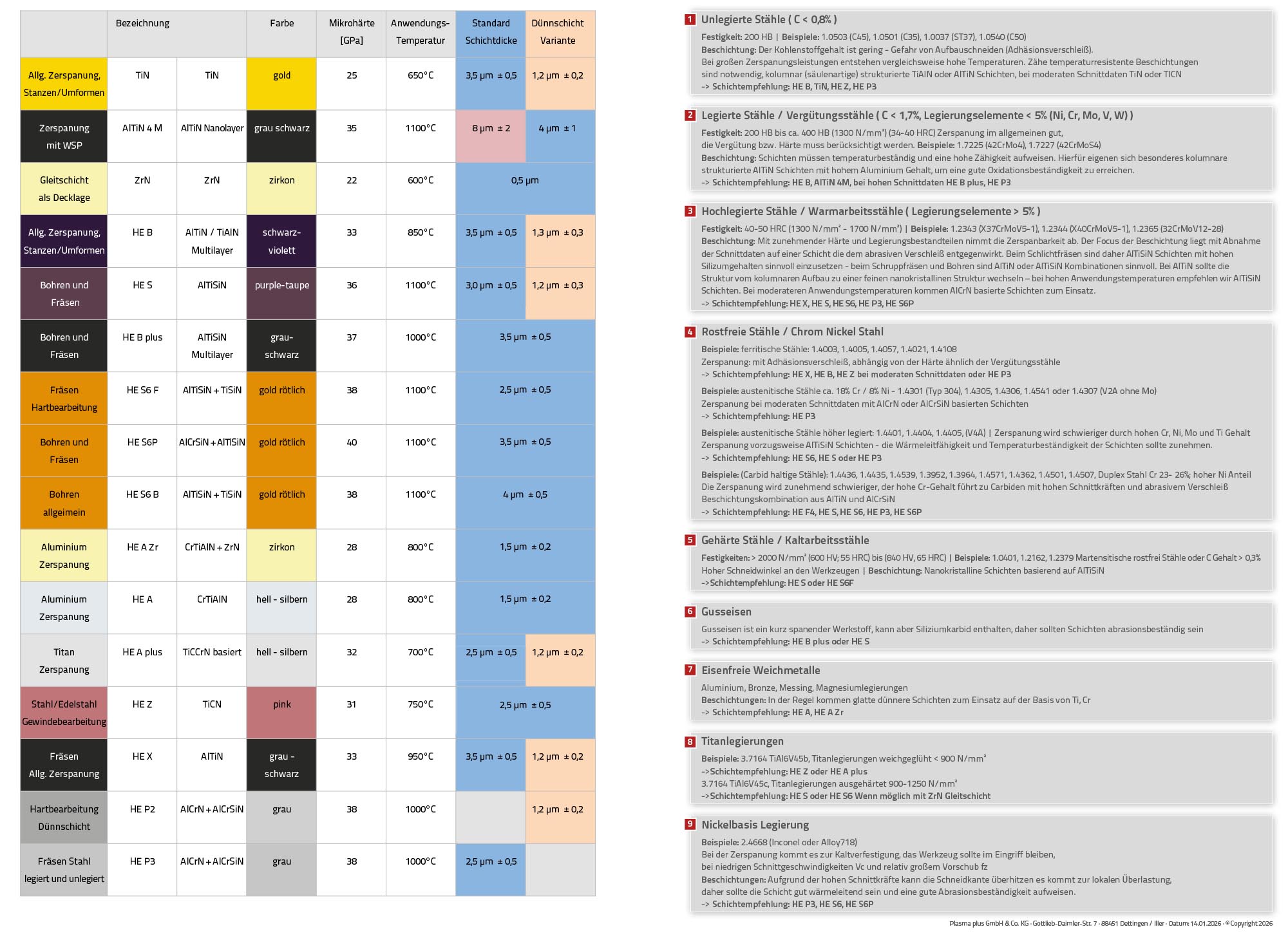 Wir haben für Sie eine Übersicht unserer Beschichtungen erstellt. In dieser Übersicht können Sie schnell und einfach erkennen welche Beschichtungen für eine spezielles Einsatzgebiet geeignet ist.